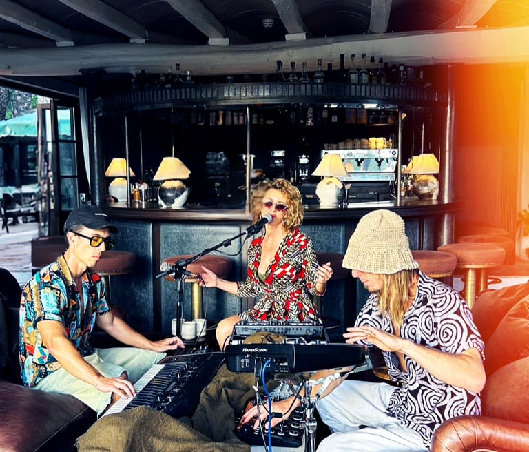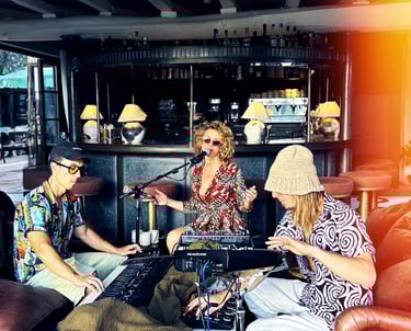 A live trio blending soulful vocals, melodic keys and organic percussion with electronic elements fusing Afro-Brazilian pulses & Balearic textures.